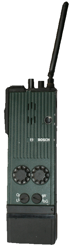 Als Funkgerät bezeichnet man ein drahtlos arbeitendes Kommunikationsgerät oder Ortungsgerät, das mit elektrischer Energie betrieben wird. Je nach Geräteart ist es stationär (Stationsfunkgeräte wie Polizeifunkzentrale, Amateurfunkstation, usw.) oder beweglich (Mobilfunkgerät, Handfunkgerät oder Walkie-Talkie, usw.). Aus heutiger Sicht werden viele Geräte, in Feststationen wie auch transportabel, als kombinierte Geräte wie zum Beispiel Sendeempfänger / Transceiver ausgeführt. Umgangssprachlich werden Funkgeräte, vor allem Handfunkgeräte, auch als Funke bezeichnet. Gängigste Funkgerätetypen sind FuG 10 und FuG 13 für die Bereiche 2 Meter und 4 Meter.Alan Funkgerät: | Bosch Funkgerät: | ||