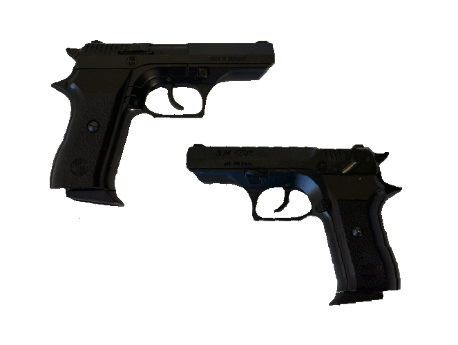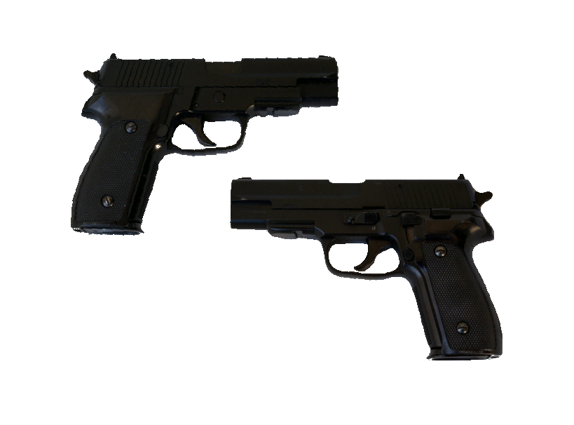 SIG Sauer P226 Länge: 197 mm, Lauflänge: 112 mm Herstellerland: Deutschland, Schweiz Einsatzland: Deutschland, Israel, Neuseeland, NL, Schweiz, UK, USA |