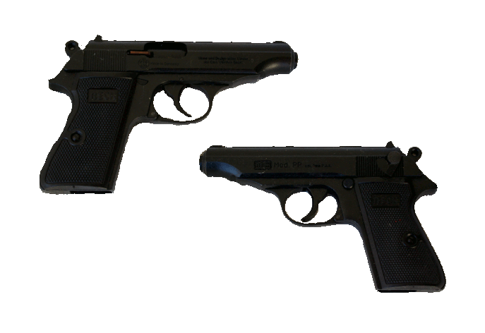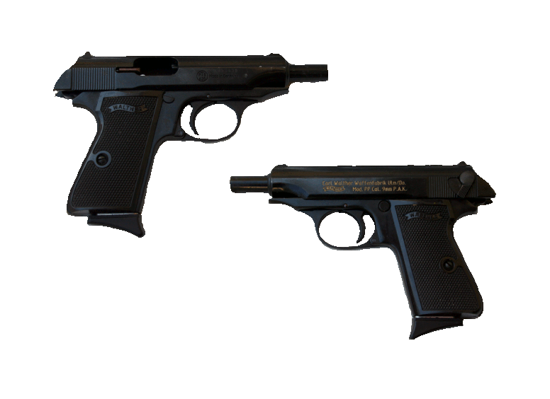 Walther Mod. PP 9mm Länge: 172 mm, Gewicht: 680 g, Lauflänge: 98 mm Herstellungsland: Deutschland |