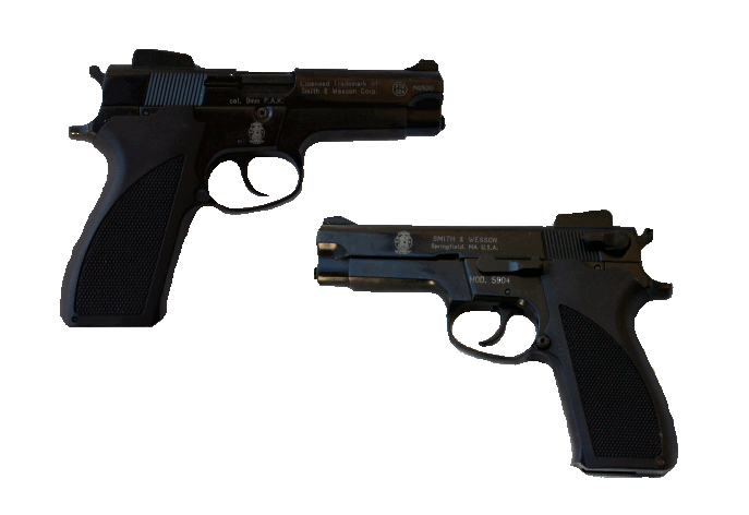 Smith & Wesson Mod. 5904 9 mm P.A.K Länge: 191 mm, Gewicht: 1070 g Lauflänge: 100 mm Herstellungsland: USA |
